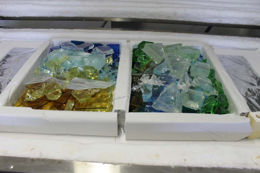 | Renovated studio | Raw glass -rocks, sheets, billets | Cast plaster forms | In new kiln |