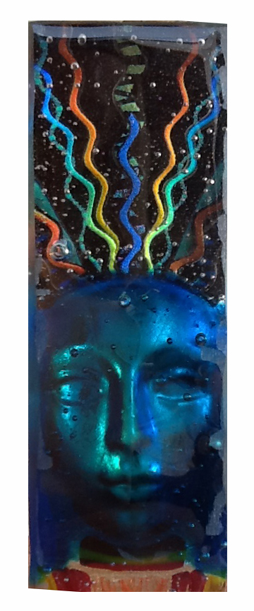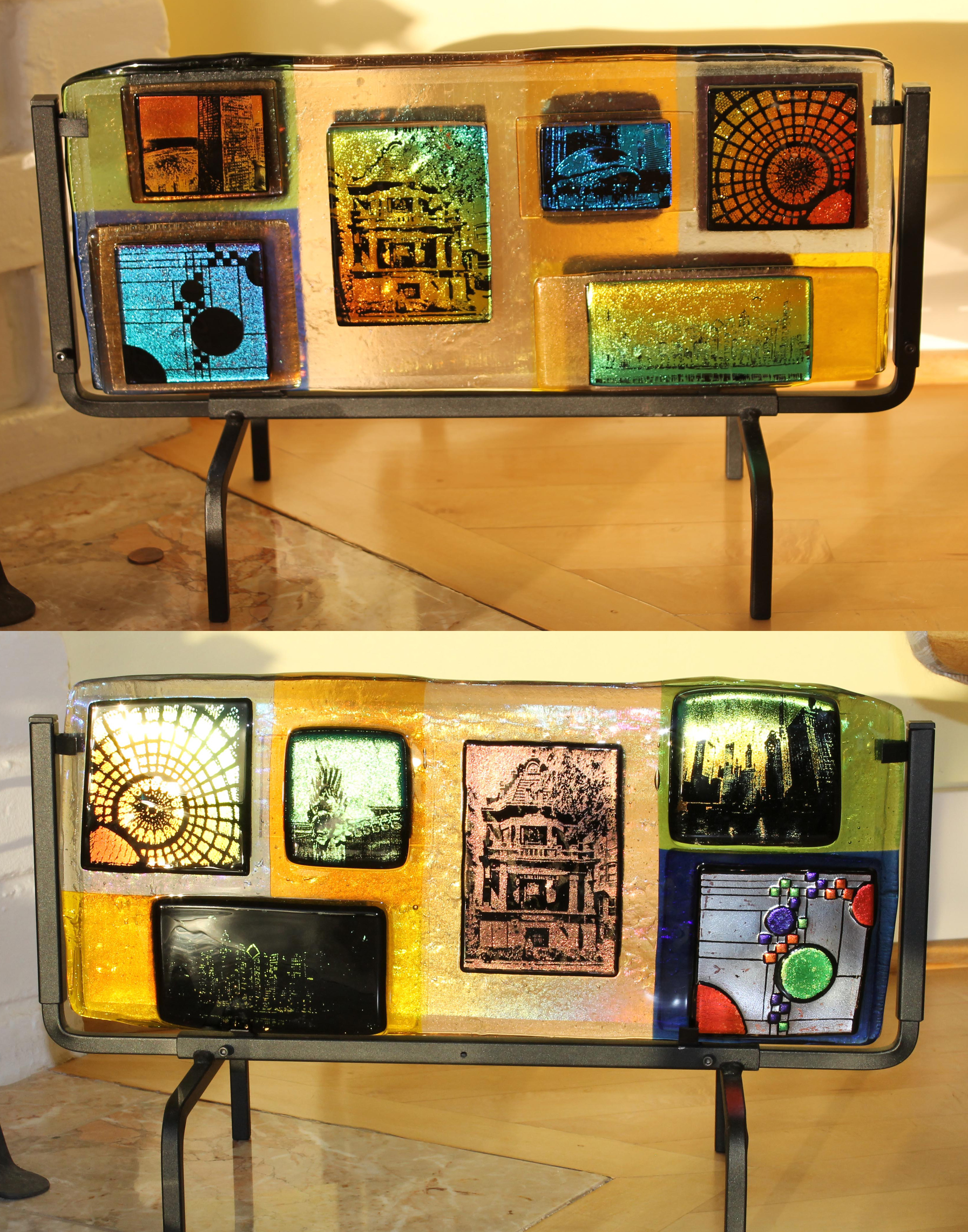 Medusa Chicago 8"x3"x2" cast glass 9"x16"x.75" fused and etched |