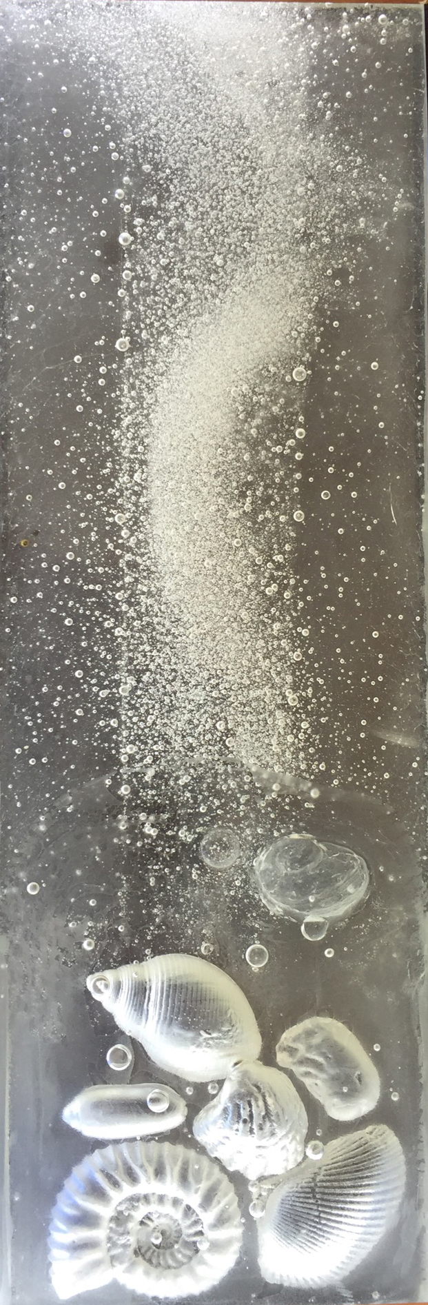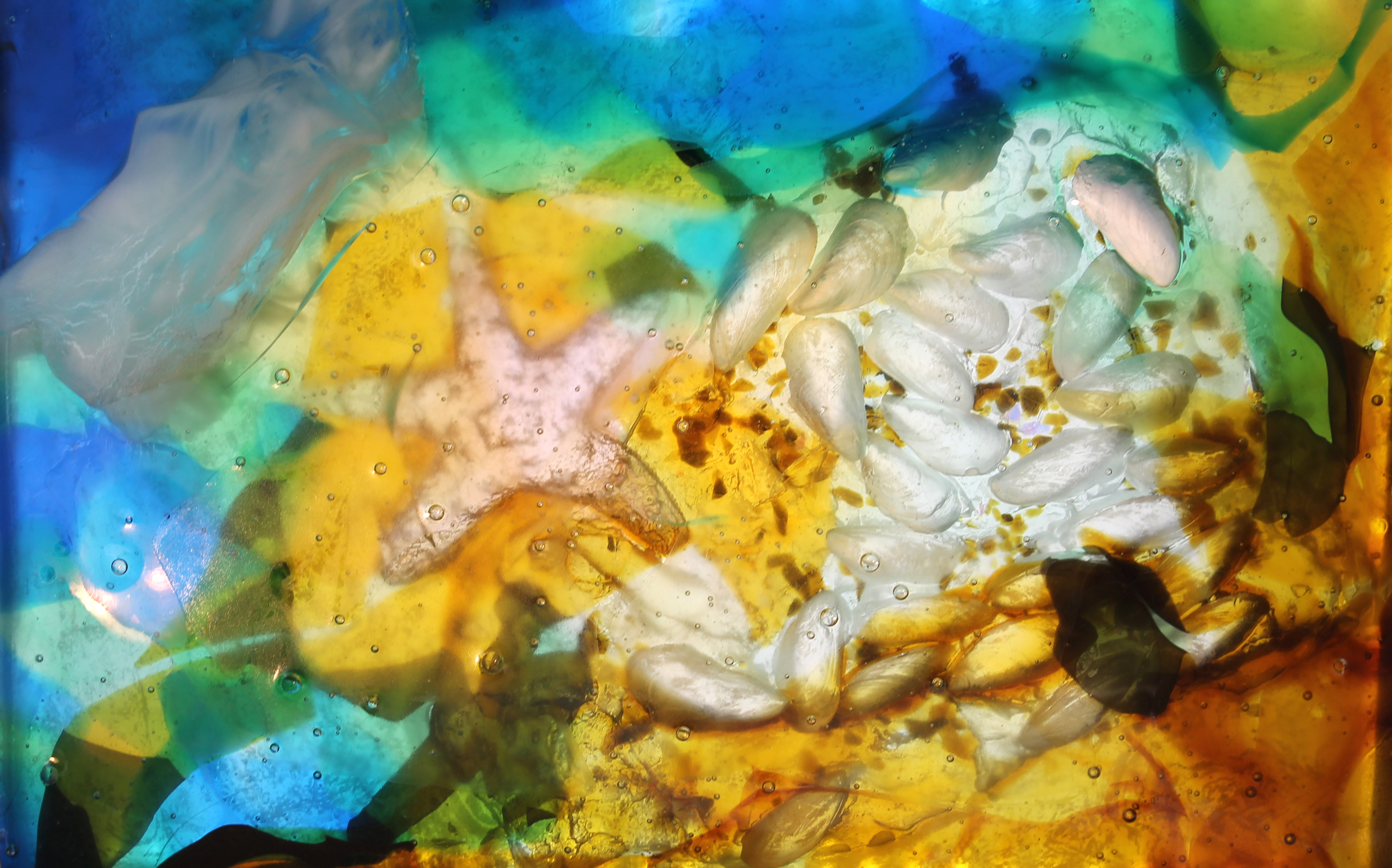 Starfish andMussels 20"x13.5"x1.5" cast glass panel with reverse relief |