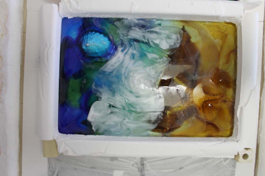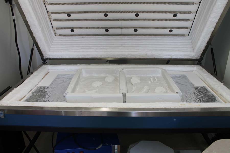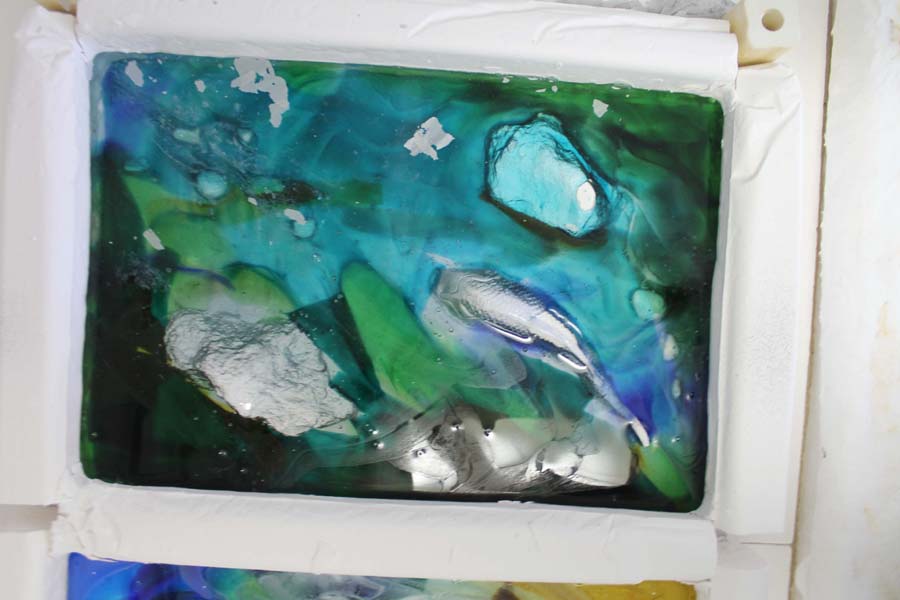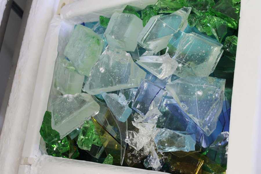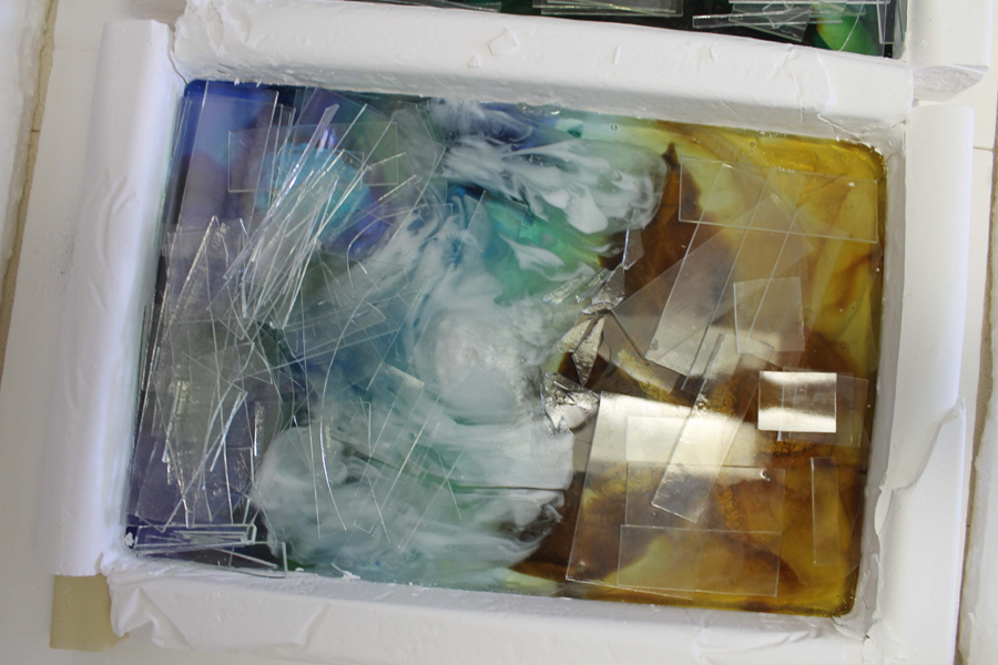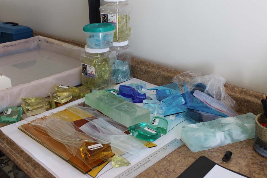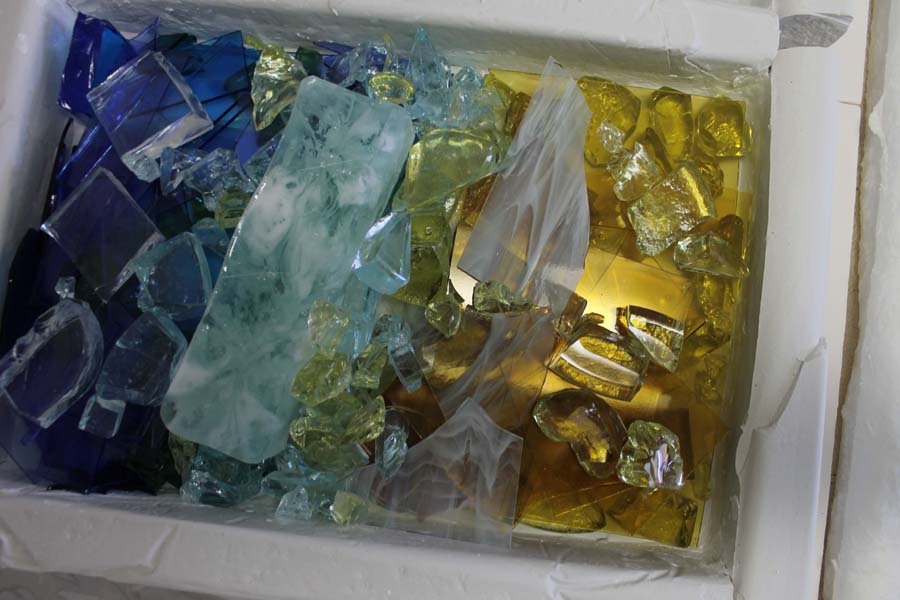 | Renovated studio | Raw glass -rocks, sheets, billets | Cast plaster forms | In new kiln |